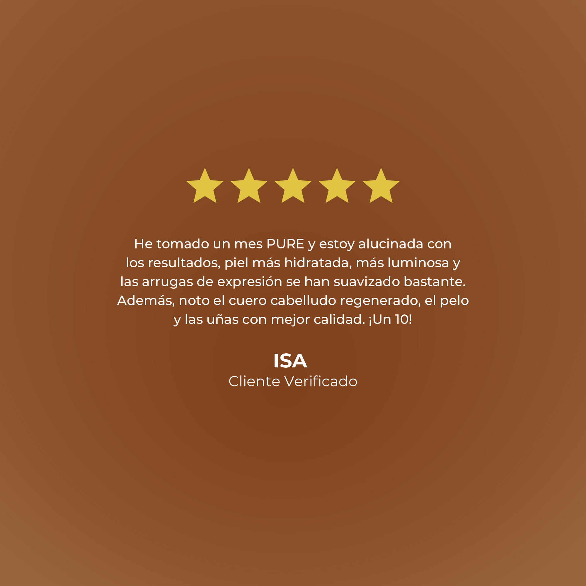 PURE es el complemento original de GOLD COLLAGEN®, formulado por nuestros científicos y nutricionistas para ofrecer una combinación única de 11 ingredientes acctivos que incluyen Colágeno Marino Hidrolizado, Ácido Hialurónico, Aceite de Borraja, vitaminas y minerales.