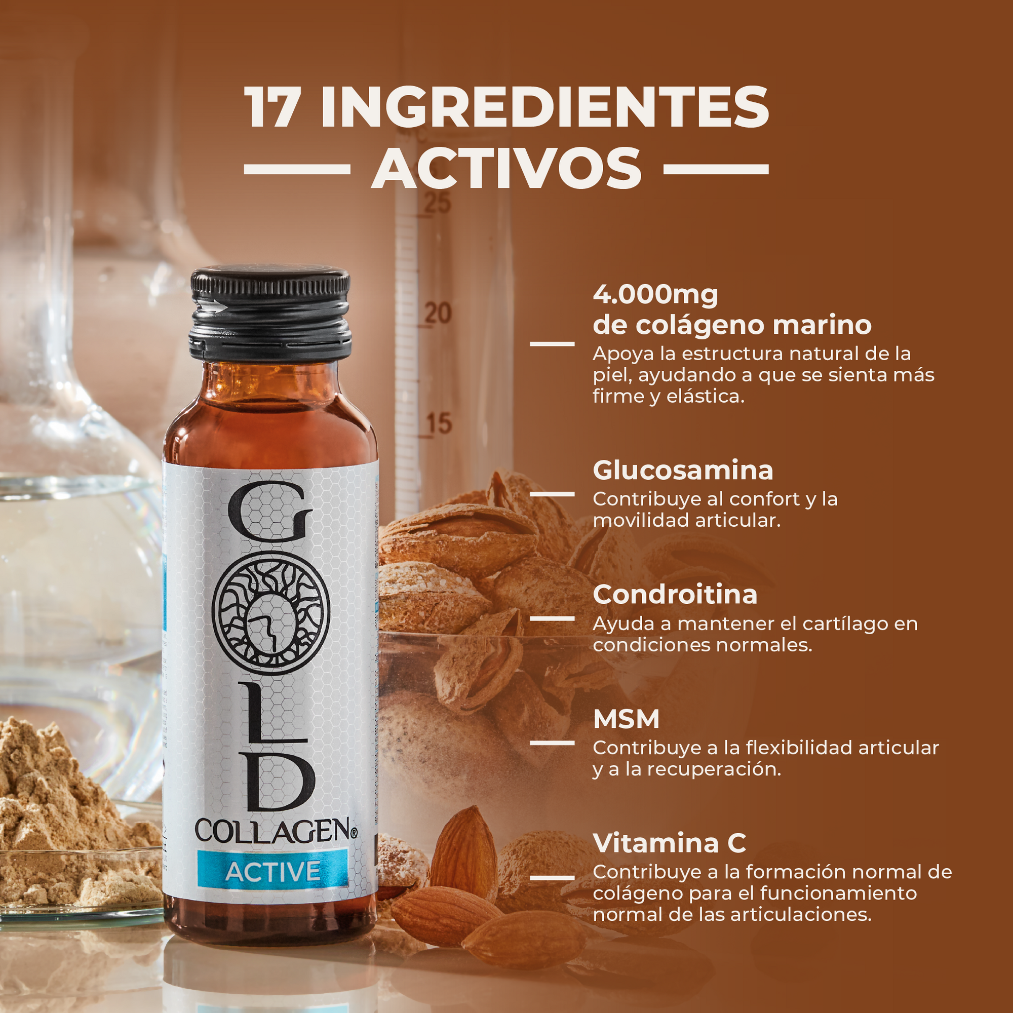 GOLD COLLAGEN® ACTIVE es una fórmula líquida de colágeno desarrollada para apoyar las articulaciones, los tejidos conectivos y la movilidad como parte de un estilo de vida activo.